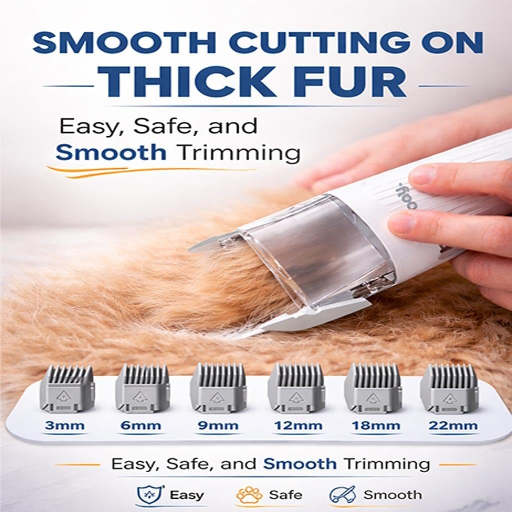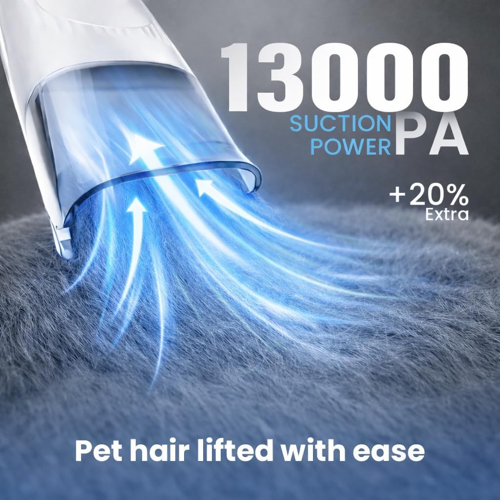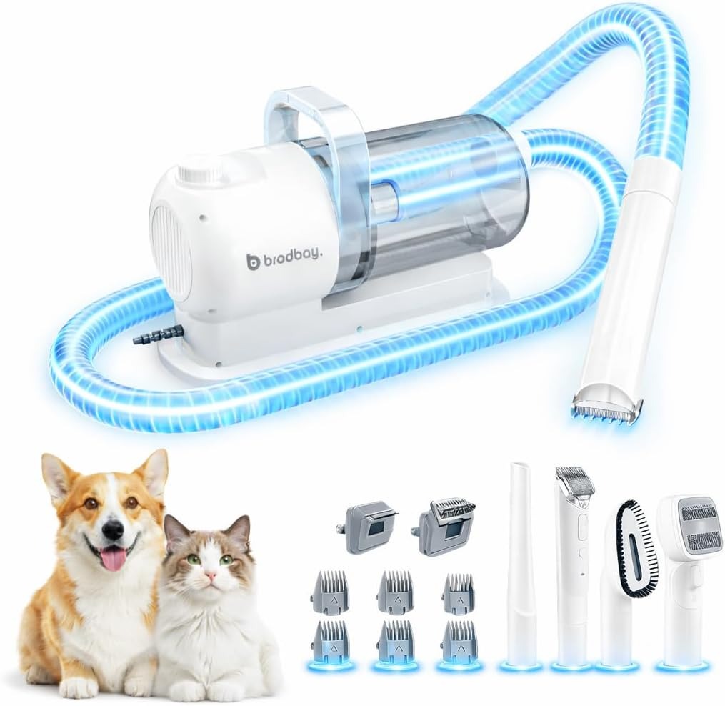 Enjoy stress free pet grooming at home with this powerful dog grooming vacuum kit, designed to capture loose hair while brushing and keep your space clean. Featuring strong suction, 7 professional grooming tools, and adjustable power levels, it effectively reduces shedding while remaining gentle on your pet’s coat and skin. The quiet operation helps keep pets calm, while the large 2.5L dust container allows longer grooming sessions without frequent emptying, making grooming simple, clean, and convenient.