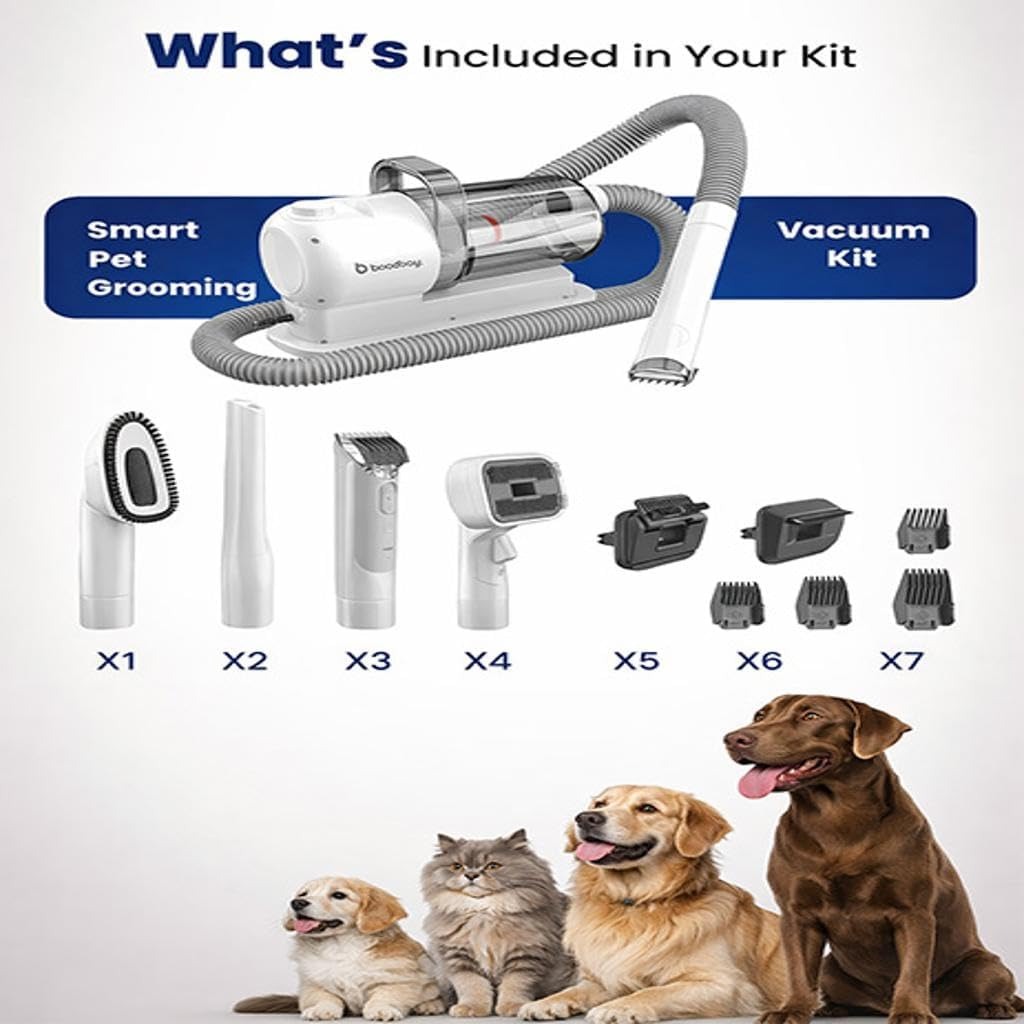 Make pet grooming easier and cleaner with the Dog Grooming Kit with Vacuum, 4-in-1 with 7 Proven Tools, 2.5L, designed to provide professional grooming results at home. This all in one grooming solution combines powerful vacuum suction with multiple grooming attachments to remove loose fur, dirt, and tangles while keeping your space mess free. The large 2.5L dust container collects hair efficiently, reducing cleanup time and maintaining hygiene during grooming sessions. Suitable for dogs of all coat types, the Dog Grooming Kit with Vacuum, 4-in-1 with 7 Proven Tools, 2.5L helps reduce shedding and keeps your pet comfortable and well maintained. Built for convenience and ease of use, this grooming kit offers a stress free grooming experience for both pets and owners, making regular care simple, effective, and professional.