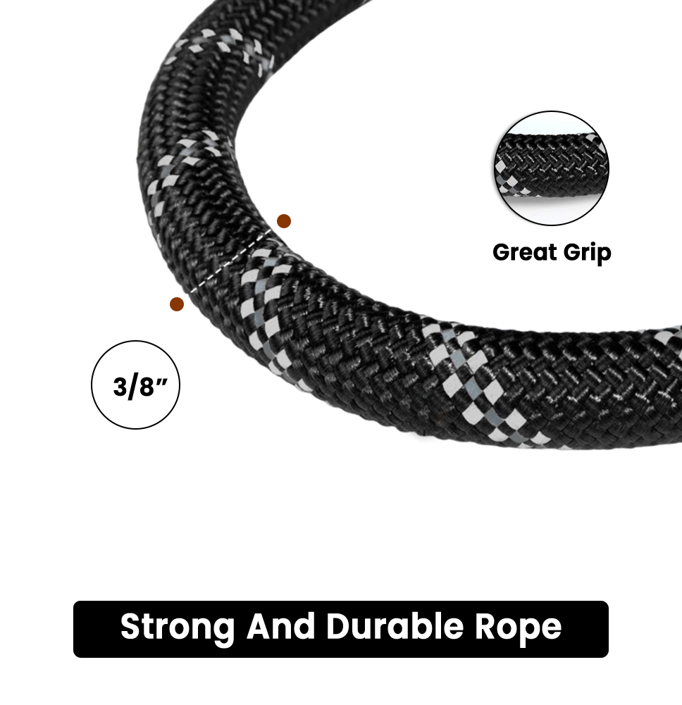 Brodbay Rope Dog Lead with Soft Padded Handle, 1.2 m Reflective Lead and Multi-Colour for Small Dogs, 1.0 cm, Black